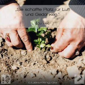 Im April bringt Sarah das Setting „Holzhütte“ mit den Clues „Jammertal, Talsenke, Senkgrube, Grubendeckel“ sowie „Deckelöffner“ in Verbindung und bastelt daraus unsere monatliche Fan-Bonus-Story. Die Story wird Sonntag im April für unsere exklusiv Steady– und Patreon-Fans publiziert.
