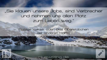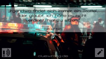Ich stöhnte und versuchte, den unflätigen Fluch zu unterdrücken, der mir auf den Lippen lag und um jeden Preis heraus zu wollen schien. „Verfluchte Sch…“ ich unterbrach mich und fügte schließlich halbherzig und grammatisch inkorrekt hinzu: „… Tag.“ Beinahe hätte ich selbst über mich gelacht, da in meinem Kopf der Wutausbruch wesentlich schlimmer und dreckiger und viel weniger unbeholfen geklungen hatte, genau wie bei einem Kind, das sich im letzten Augenblick schämte, etwas Wüstes […] Weiterlesen