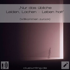 Möchtet ihr mehr Lesestoff, stöbert doch in unserem Kurzgeschichtenarchiv – auf unserer Clue-Seite beispielsweise findet über unzusammenhängende Wort-Vorgaben zu Überraschungsgeschichten.