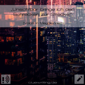 Wir sind übrigens auch auf Social Media unterwegs, wo wir mit euch unseren Content teilen und uns hier und da dazu hinreißen lassen, uns sozial und kontaktfreudig zu zeigen. Auf Twitter sind wir beinahe täglich anzutreffen, und häufig tatsächlich gesprächig. Genauso redselig, wenn auch wesentlich einseitiger, ist unser Bot, der stündlich eine Zufalls-Story aus dem Kurz- und Hörgeschichtenarchiv postet, um euch vom Twittern abzulenken. Auf Facebook und Instagram könnt ihr nicht nur in die neueste Clue Cast Episode hören, sondern zweimal wöchentlich in unsere Vergangenheit eintauchen, denn wir stellen euch die Veröffentlichungen aus dem Mai 2019 vor. Jeden Sonntag kommt dazu auf allen Kanälen eine weitere E-Card mit einem dämlichen Wortspiel oder Tippfehler, der unseren Hirnen oder Tastaturen entsprungen ist.