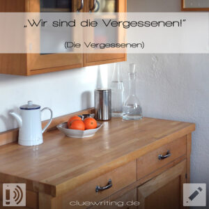 In den Kurzgeschichten des Mais nimmt euch Sarah mit zu einem Butterfass und in eine Halle, Rahel verbringt derweil Zeit im Winterquartier und vertextet die Titelvorgabe „Wir brauchen mehr Haftnotizen“. Für die Clue-Vorschläge dieses Monats danken wir June Is, Nancy, Sister 7, und Streifen Tier auf Twitter – ihr seid grandios!