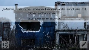 In „Symphonie im Bunker“ sowie der Fortsetzung „Winter im Tonstudio“ sehen wir, dass Zombies auch in Zukunft nicht angenehmer sein werden. Teil 1 (Lesen | Hören), Teil 2 (Lesen | Hören)