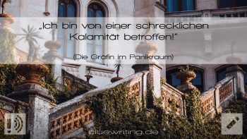 Wir möchten euch herzlich zur fünfzehnten Episode der vierzehnten Staffel des Hörgeschichten-Podcasts Clue Cast begrüßen. Sie basiert auf der Story „Die Gräfin im Panikraum“ von Rahel. Das halbe Dorf gerät in Aufruhr, wenn die werte Frau Gräfin im Panikraum festsitzt. In dieser Geschichte wurden die vorgegebenen Clues „Weidenkätzchen, Kalamität, Wohlbefinden, Brandyflasche“ und „Paste“ vertextet und sie spielt am Setting „Panikraum“. Die Sprecherin dieser Episode ist Saskia Geißler. […] Weiterlesen