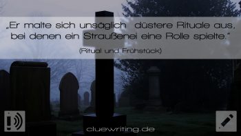 Wir möchten euch herzlich zur zehnten Episode der vierzehnten Staffel des Hörgeschichten-Podcasts Clue Cast begrüßen. Sie basiert auf der Story „Ritual und Frühstück“ von Sarah. Da will man doch nur einem Geheimbund beitreten und soll dafür auch noch Tagetes besorgen. In dieser Geschichte wurden die vorgegebenen Clues „Gabel, Rätsel, Tagetesstrauß, Straußenei“ und „Eis am Stiel“ vertextet und sie spielt am Setting „Nebliger alter Friedhof“. Der Sprecher dieser Episode ist Klaus Neubauer. […] Weiterlesen