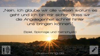 Wir möchten euch herzlich zur dreizehnten Episode der dritten Staffel des Kurzgeschichten-Podcasts Clue Cast begrüssen. Sie basiert auf der Story „Spiel, Spionage und Kernphysik“ von Rahel. Nicht jedes dramatische Ereignis bei einem Kernkraftwerk ist eine Explosion. In dieser Geschichte wurden die vorgegebenen Clues „Kleiderschrank, Teddybär, Kroketten, Vorhang“ und „Metallträger“ vertextet und sie spielt am Setting „Atomkraftwerk“. Der Sprecher dieser Episode ist Klaus Neubauer. […] Weiterlesen