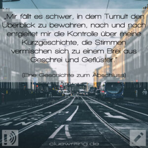 Wenn ihr nicht den letzten Sommerspaziergang macht und wieder mal durch eure Social Media Accounts scrollt, wieso nicht uns besuchen? Auf Twitter kann man oft mit uns unterhalten oder unseren hochintelligenten Bot bei der Arbeit beobachten, wie er stündlich eine Zufalls-Story aus unserem Kurz- und Hörgeschichtenarchiv postet. Auf Facebook und Instagram geben wir euch eine Vorschau auf die neuste Clue Cast Episode und jeden Sonntag kommt eine neue E-Card in herbstlichen Farben dazu, die mit einem Wortspiel aus der Clue Writer’schen Wörterschmiede bestückt ist. Und zudem gibt es noch den Clue Writing Newsletter, der jeden Samstag in eurer Mailbox materialisiert wird und in dem die neuesten Beiträge der Woche zusammengefasst sind, damit ihr nie etwas verpasst!