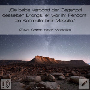 Im September lädt euch Sarah ein, mit ihr an das Setting „Am Schreibtisch“ zu kommen, wo sie die Clues „Glasstern, Sparbüchse, Blattgrün, Terrarium“ sowie „Taschentuchbox“ vertexten muss. Daraus entsteht unsere monatliche Fan-Bonus-Story, die Ende Monat für unsere Steady– und Patreon-Fans zu lesen sein wird.